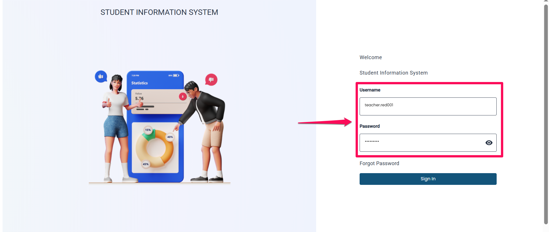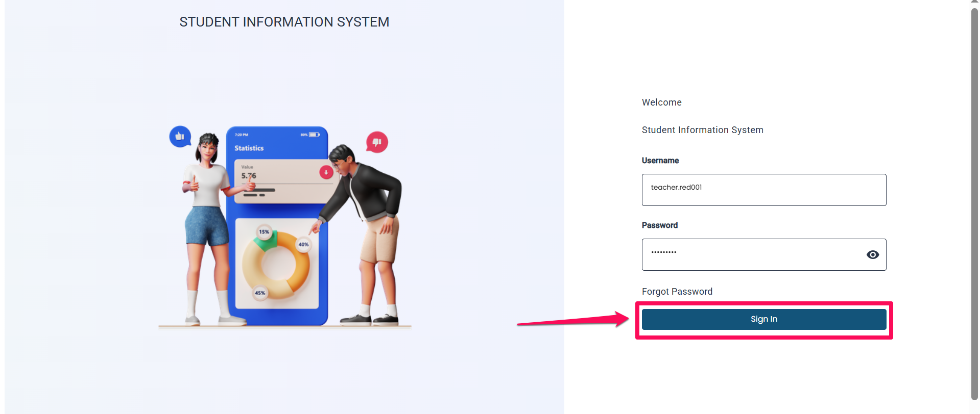- Click the 'Sign in' button. You will then be redirected to your teacher dashboard.