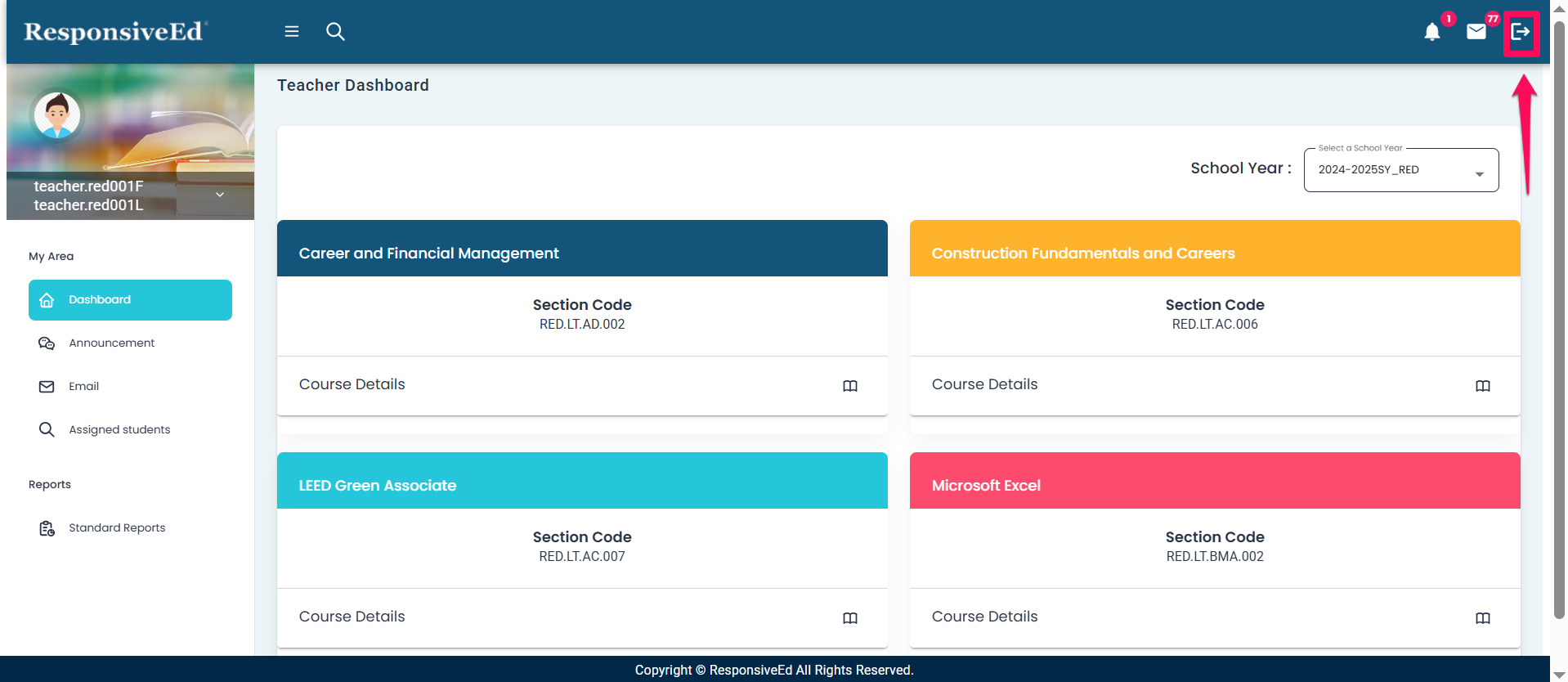 - If you need to logout of the platform, click on the 'Logout' icon located at the top right corner of the dashboard.
