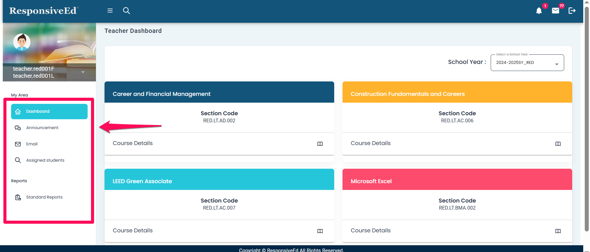 Assigned Students: Displays the students who are assigned to specific Course-Section.