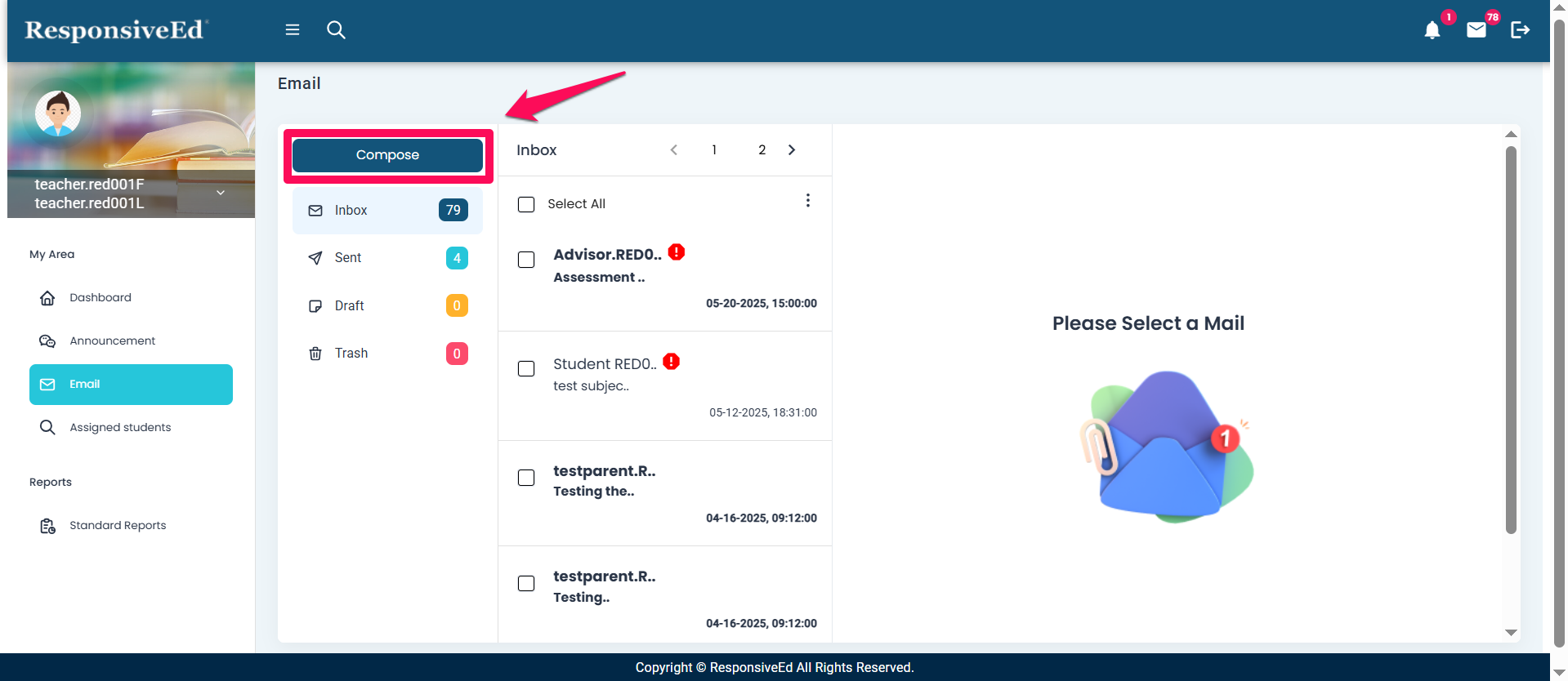 In email section, you can use the Compose option to write a new message. This is helpful when you want to send an email to other users.