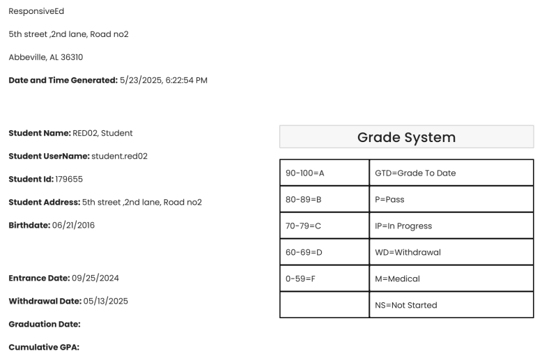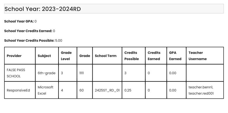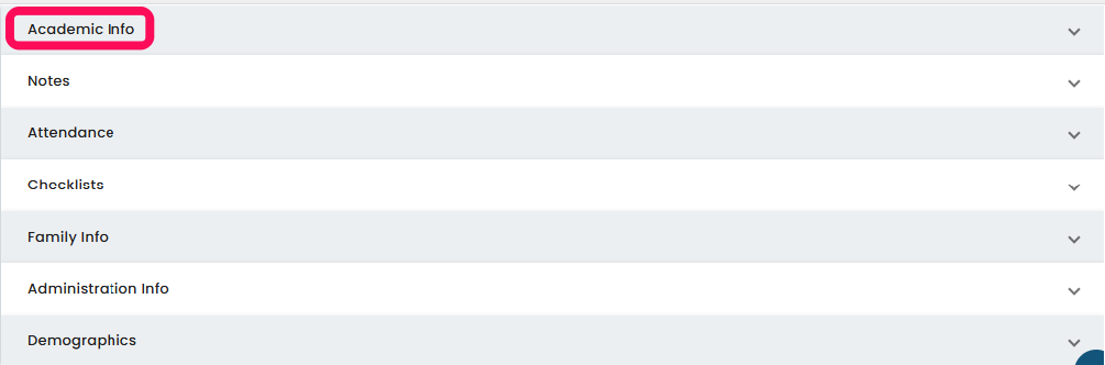 • To view details, click the pencil icon in the Action column for the desired student, then select Academic Info.