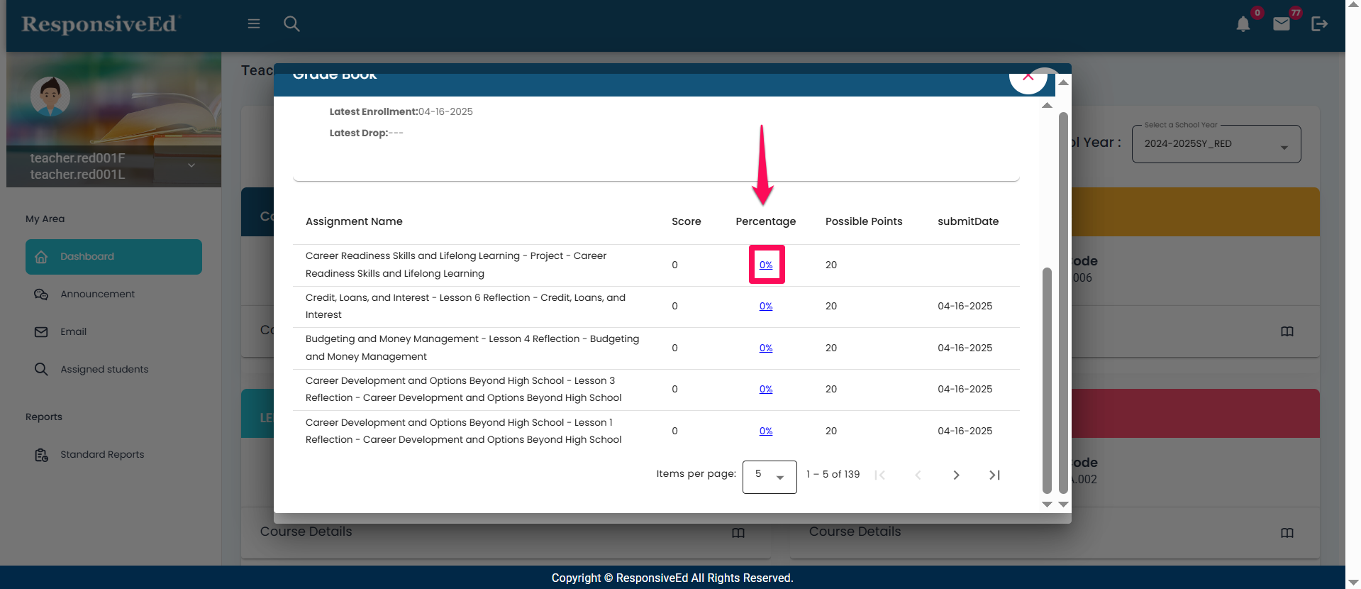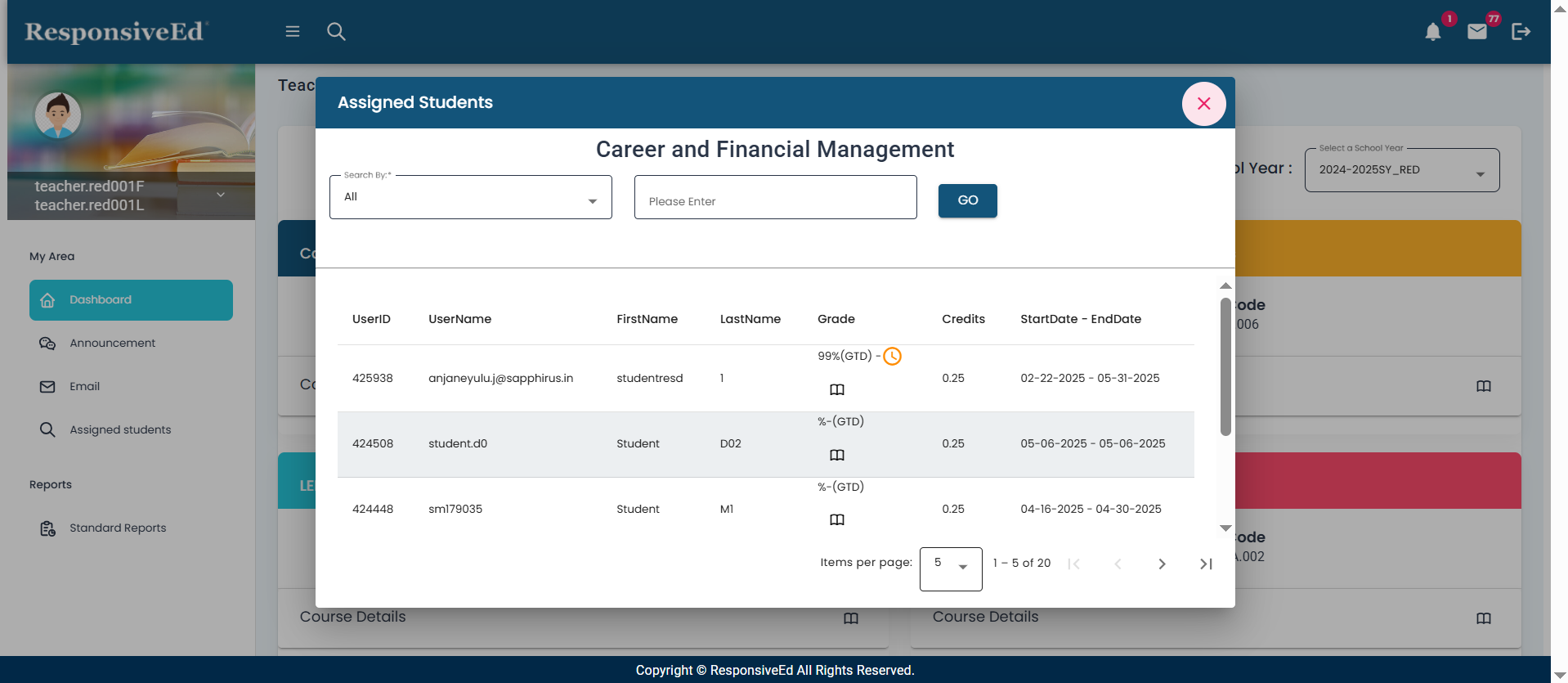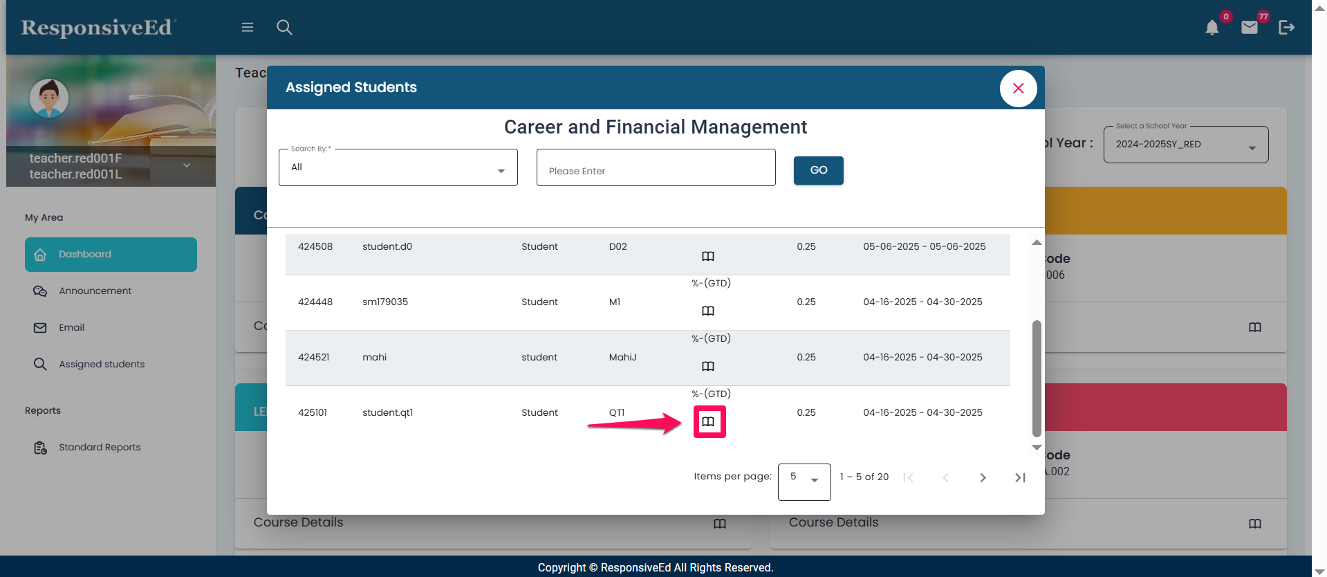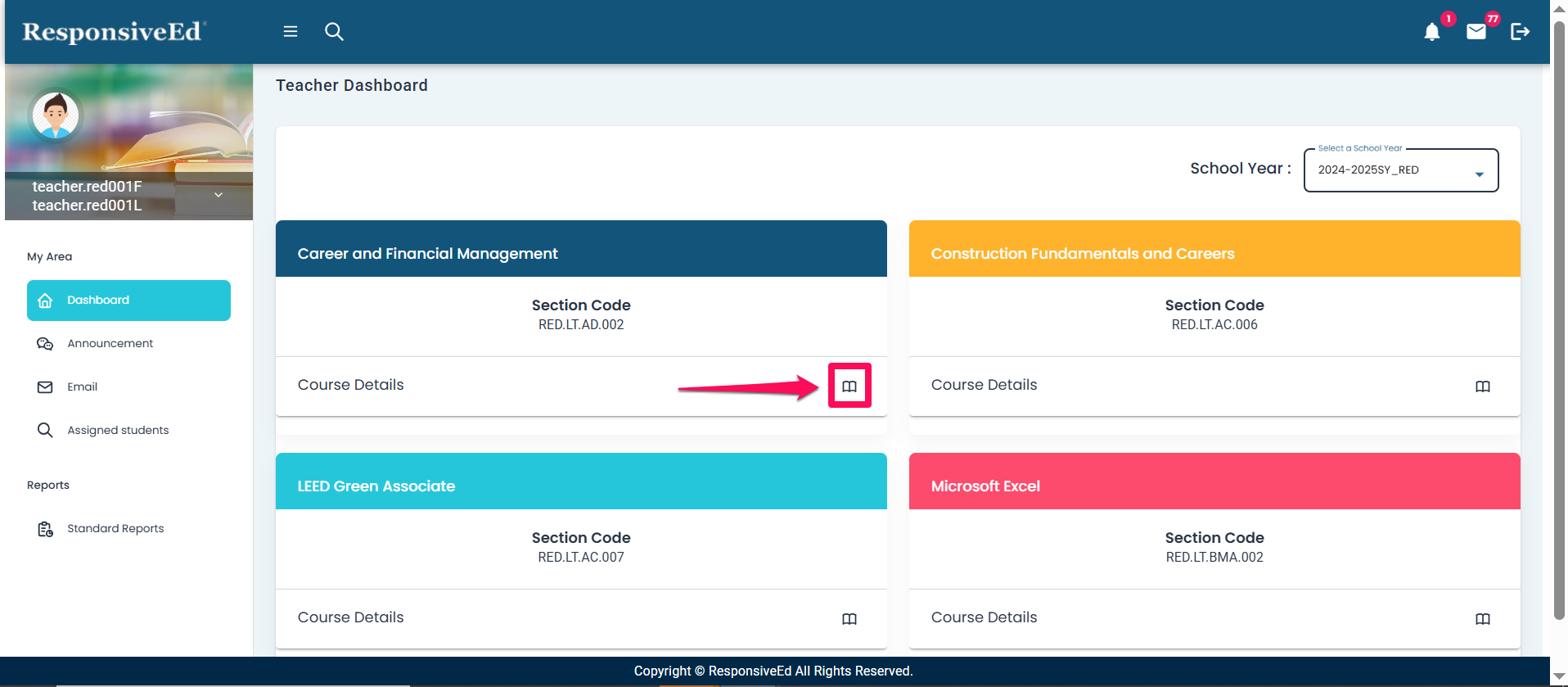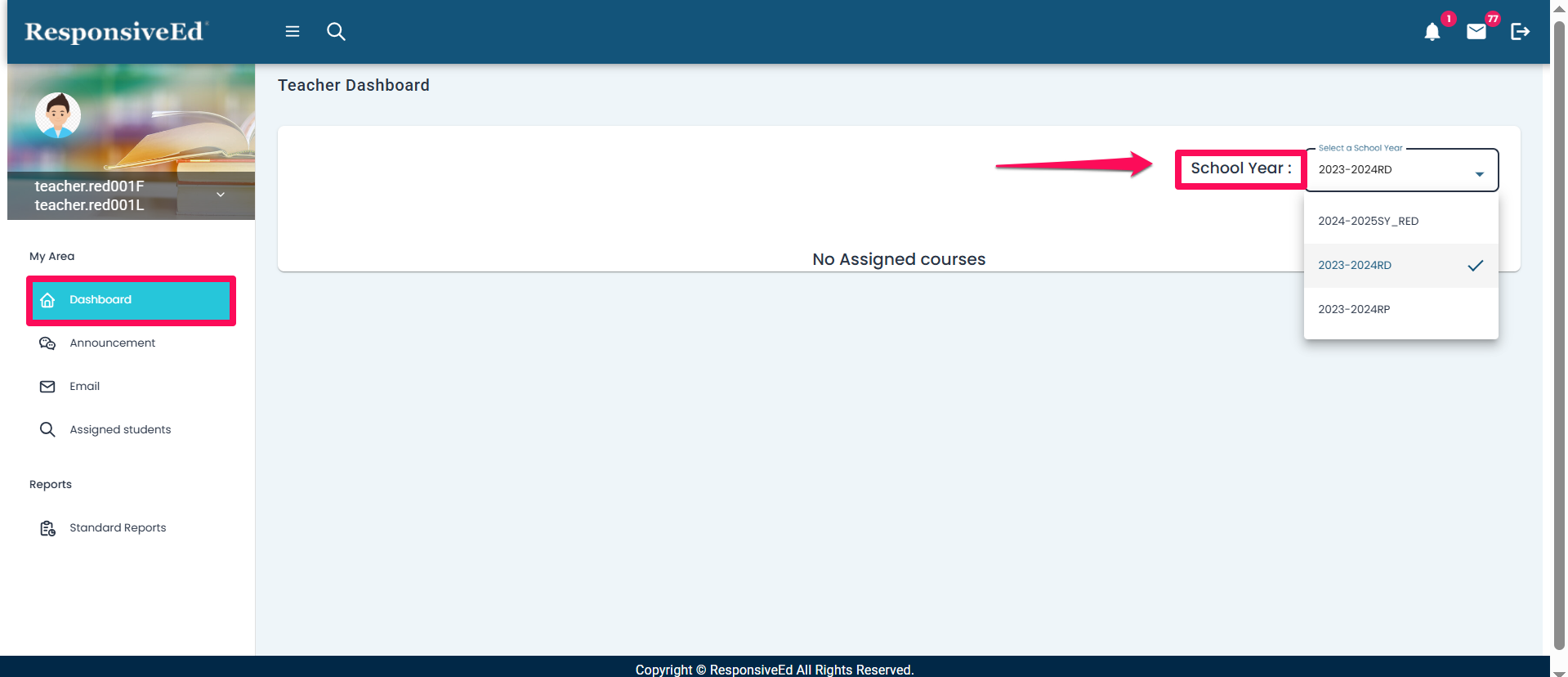 - The assigned courses will be displayed on your dashboard for the selected school year.
