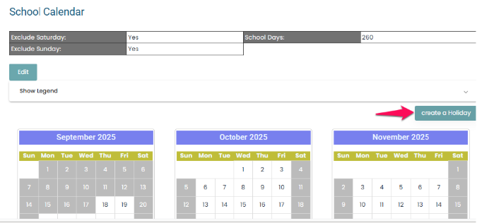 How to set up the holiday calendar? FocalPointK12 Support Agent September 29, 2025 19:25 Select Global School year Manage from the left-hand side menu.Click on search under details section for the individual institution.Click on “Create Holiday” and fill the fields and save.Once completed, the date will be highlighted in green. Was this article helpful? 0 out of 0 found this helpful Have more questions? Submit a request Comments 0 comments Please sign in to leave a comment.