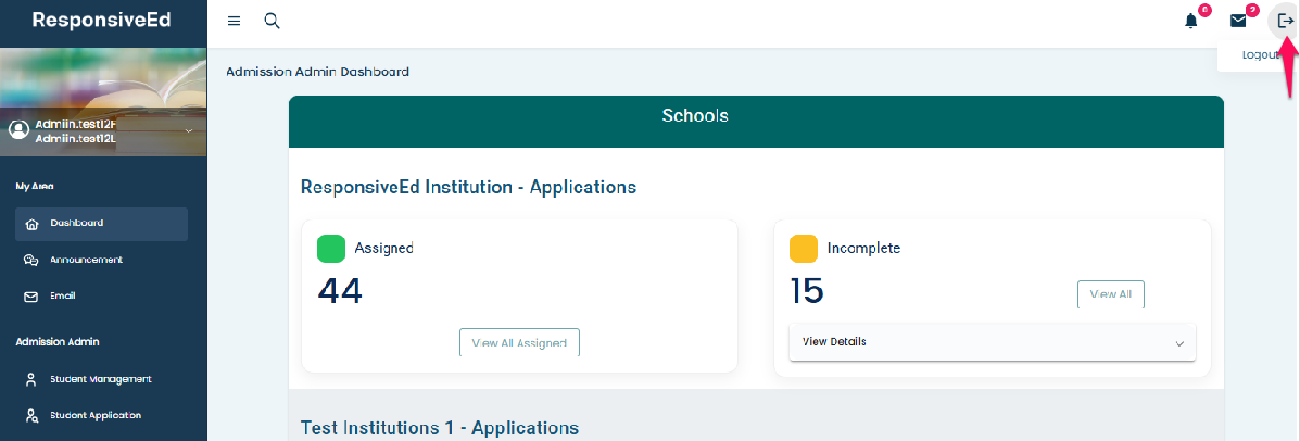 • After completing your work in the portal, go to the upper right corner of the screen.