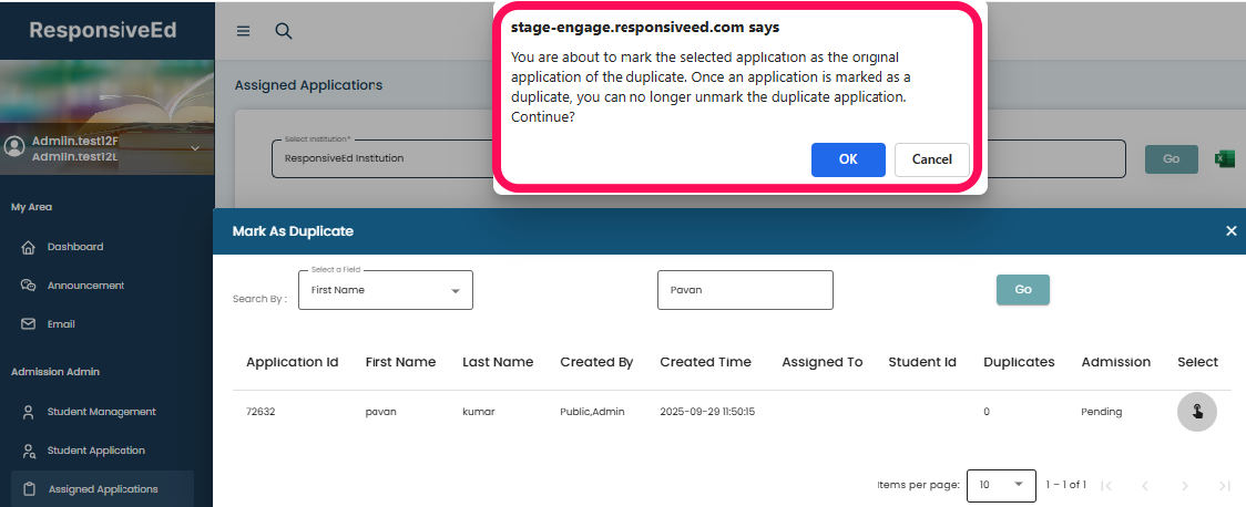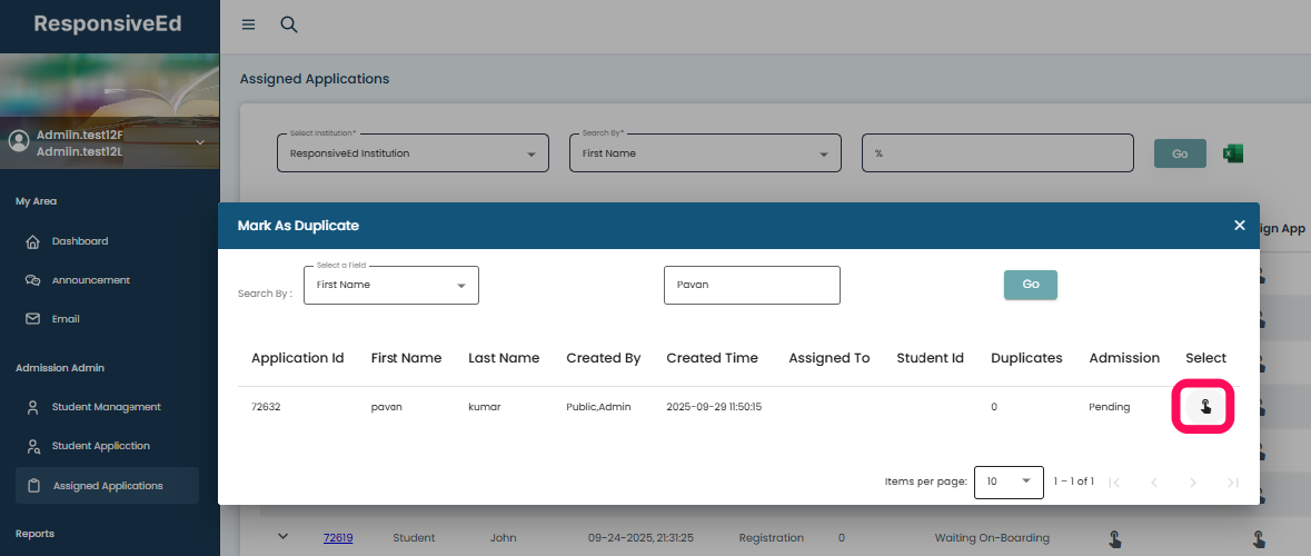 • This Screen Displays Applications that have already been allocated to a specific admission admin for review, processing and approval.