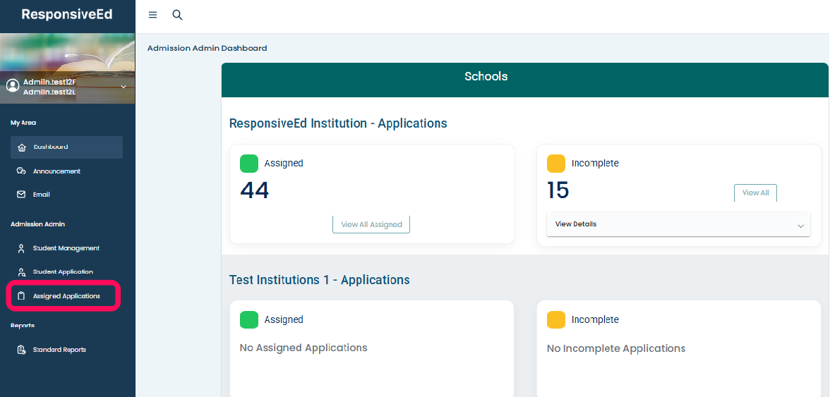 • Use the Select Institution dropdown at the top to filter applications by institution.