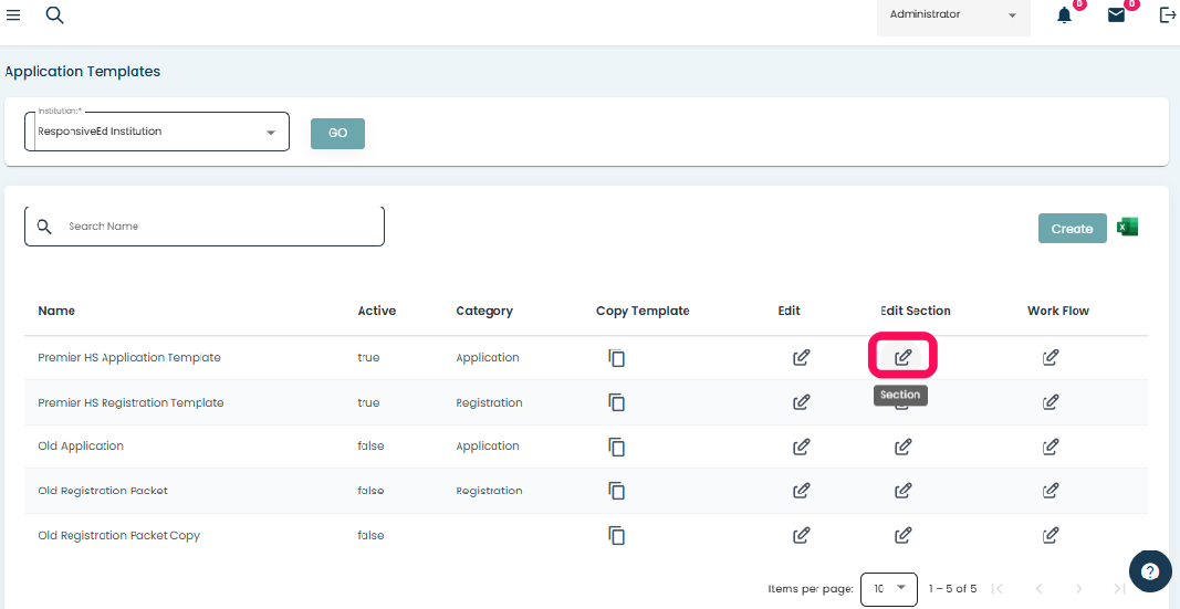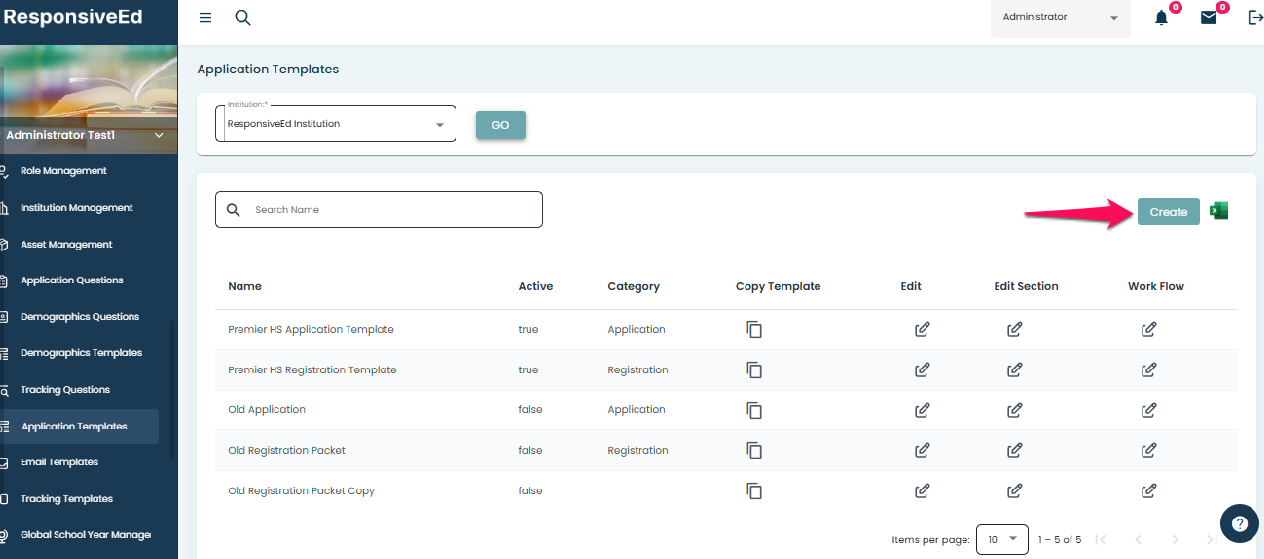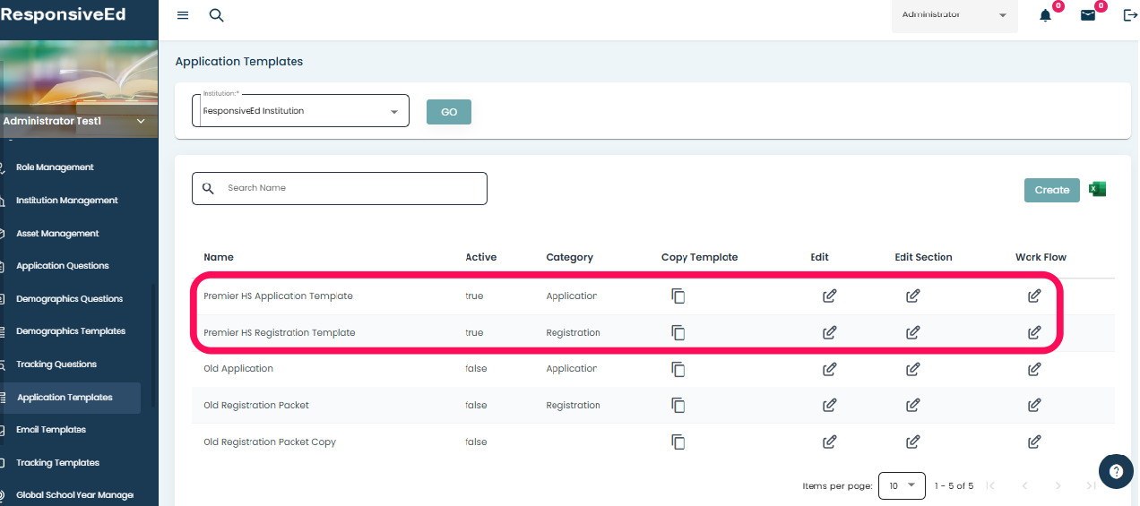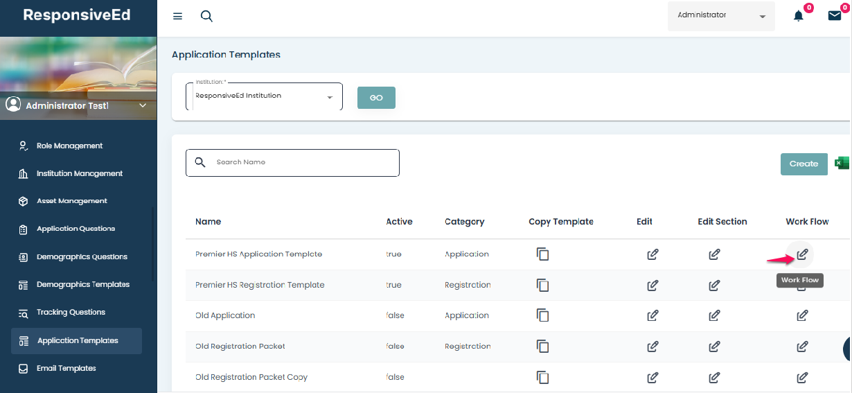 - Workflow steps Setup: different stages the student’s application goes through from the time it is submitted until it is completed/approved.