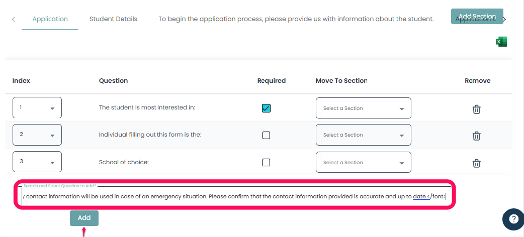 - When a field is marked as Required, it becomes mandatory for the student or parent to complete during the application enrollment on the school website.