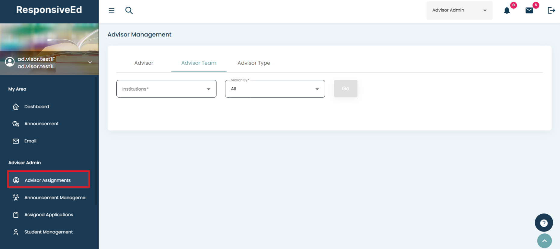 In the left menu, click Advisor Assessment under Advisor Admin.