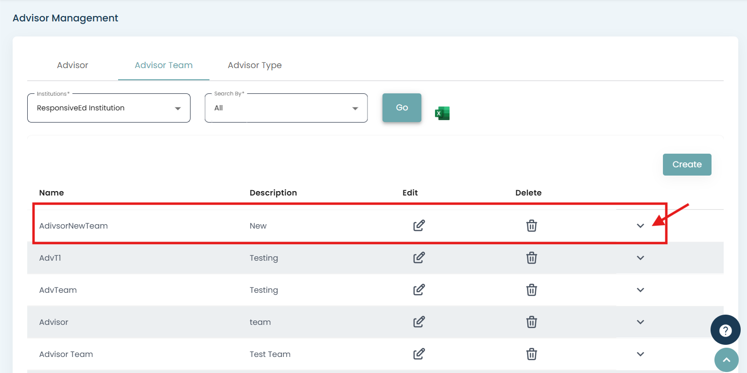 The advisor team name will appear here click the down arrow next to the advisor name.