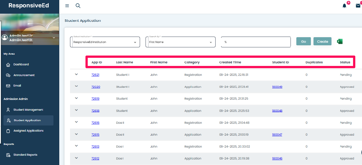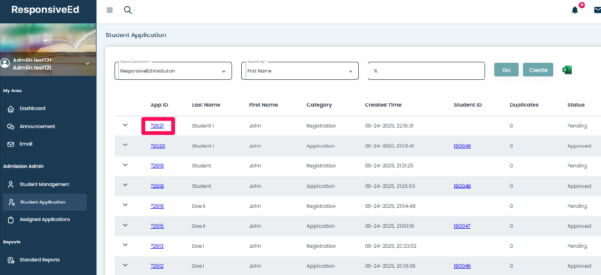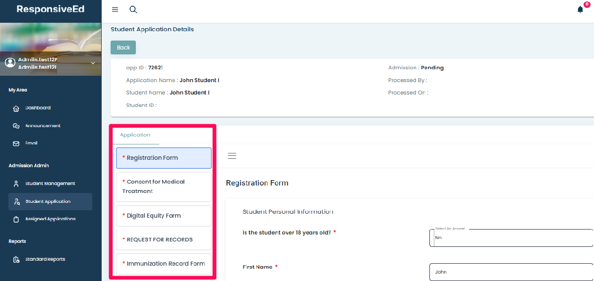 Inside the application you can review all submitted fields (contacts, documents, notes).