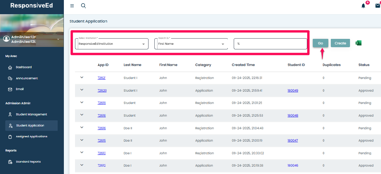At the top use Select Institution and pick the correct school. Click Go to run the search.