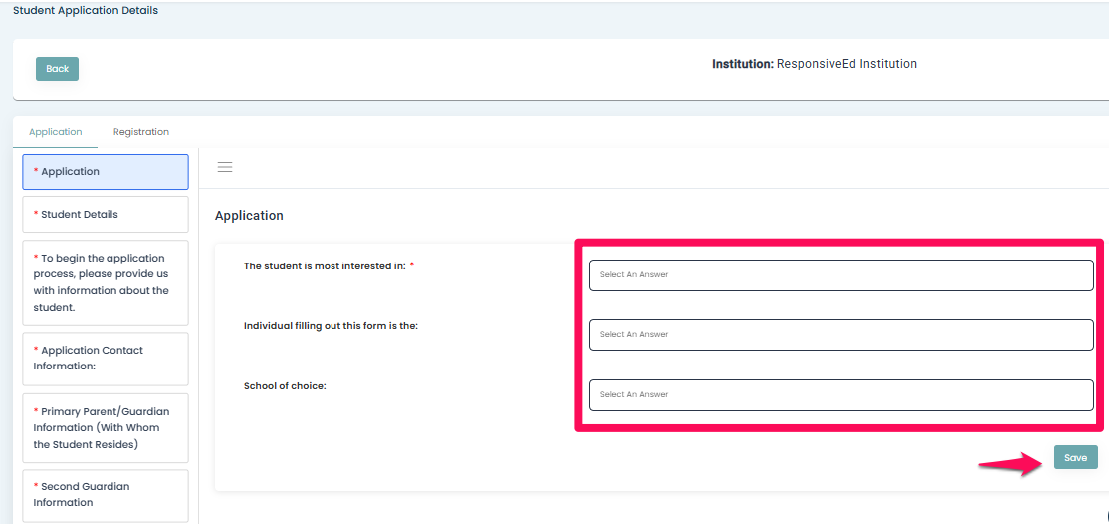 Inside the application you can review all submitted fields (contacts, documents, notes).