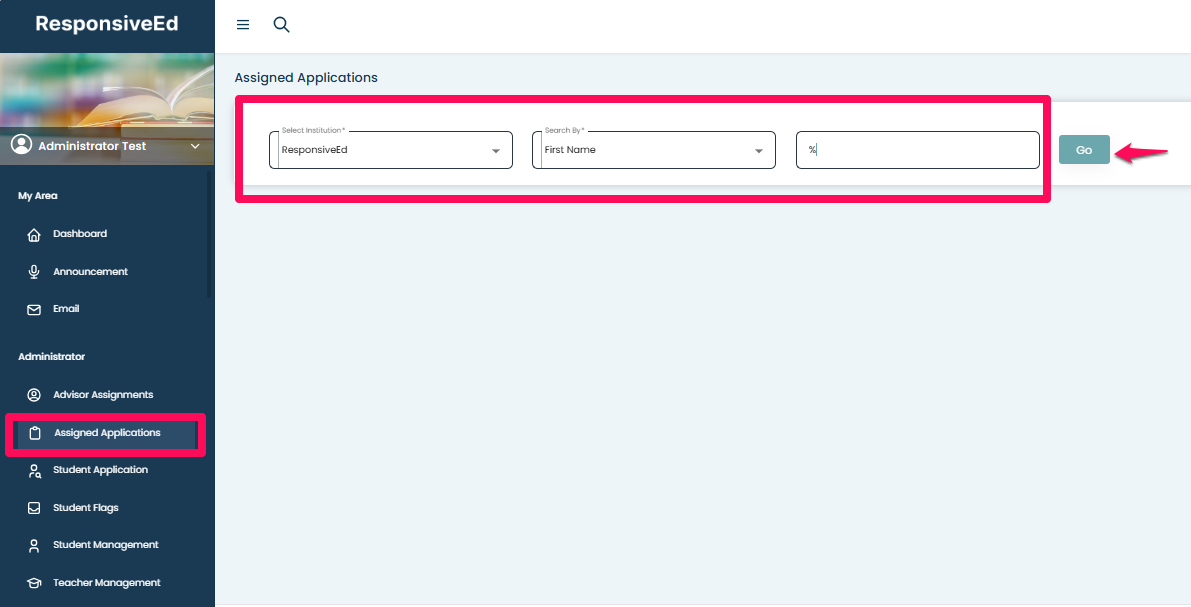 - Navigate to the assigned application section on the left-hand side of the menu.