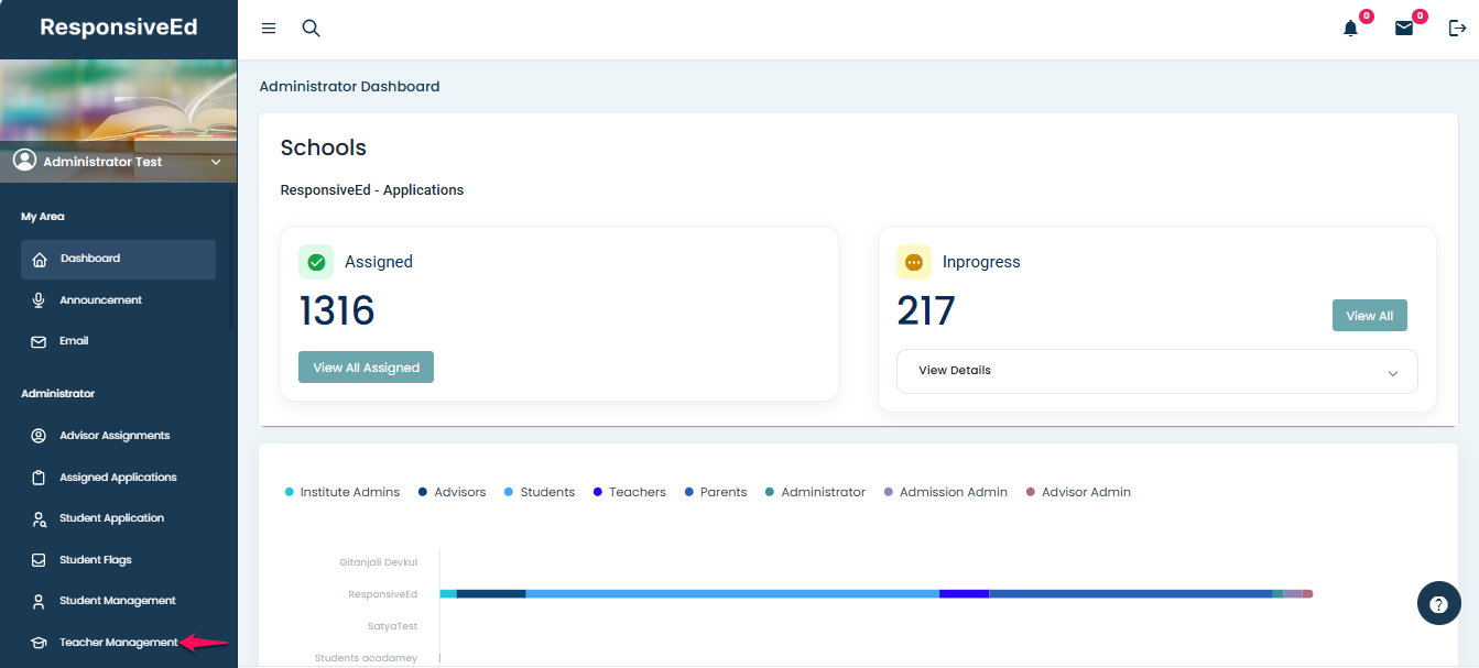 - Select “Teacher Management” from the left-hand side menu