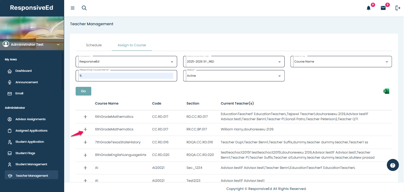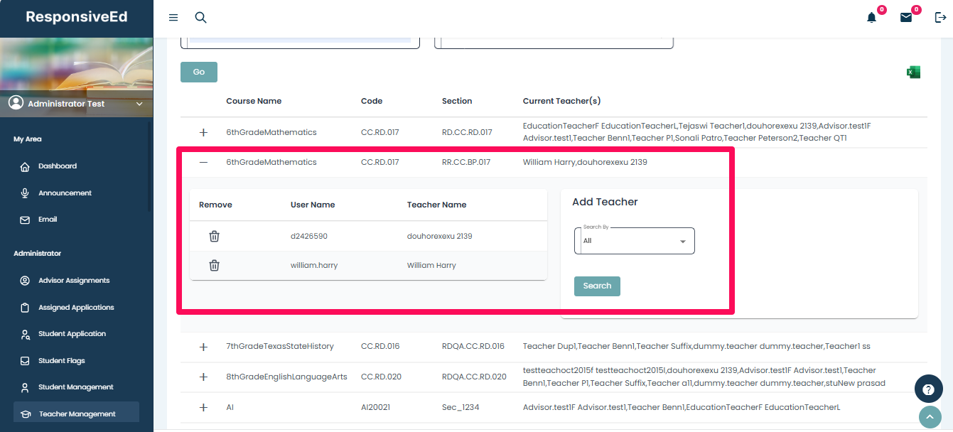 - It will display the teachers who are already assigned to the course.