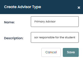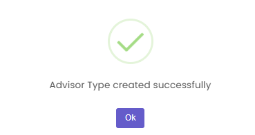 - Once saved, a success message will appear confirming that the Advisor Type has been created.