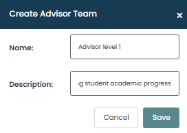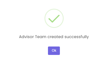 - Once saved, a success message will appear confirming that the Advisor Team has been created.