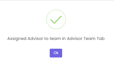 - Once saved you will receive the success message saying assigned advisor to team in advisor team tab.