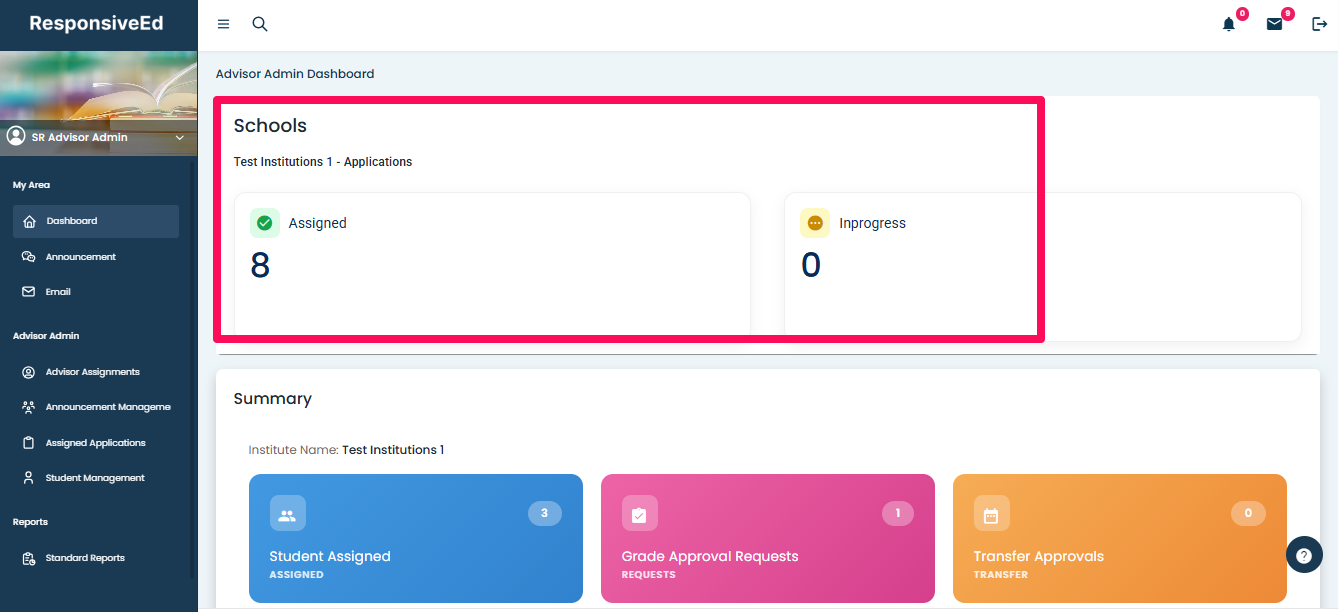 In Progress – Displays applications that are still pending advisor action or student follow-up.