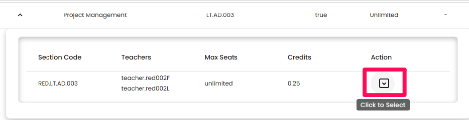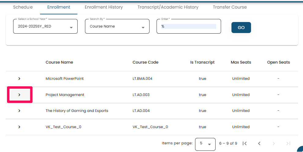 • Click the arrow to the left of the course name.