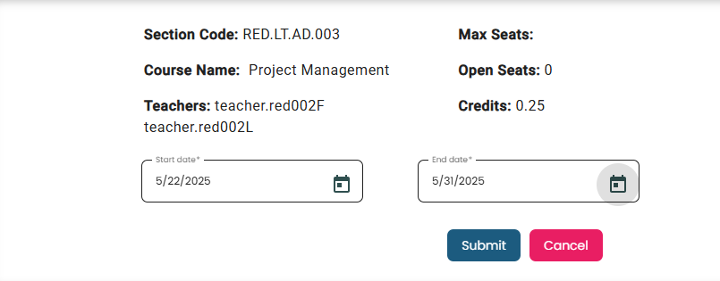 • Enter the enrollment start and end dates, then submit